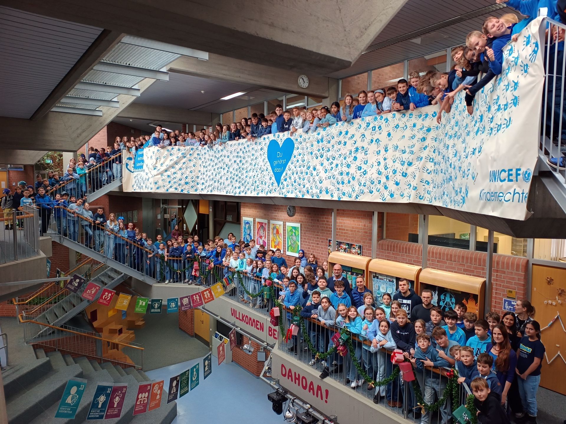 Zum 4. Mal fand er statt, unser schuleigener Blau Tag anlässlich des internationalen Tags der Kinderrechte am 20. November. Vor 36 Jahren, am 20.11.1989, wurde die UN-Kinderrechtskonvention verabschiedet. Sie spricht jedem Kind, unabhängig von Nationalität, Hautfarbe, Religionszugehörigkeit, Geschlecht und sozialem Status per Gesetz unverhandelbare Rechte zu.