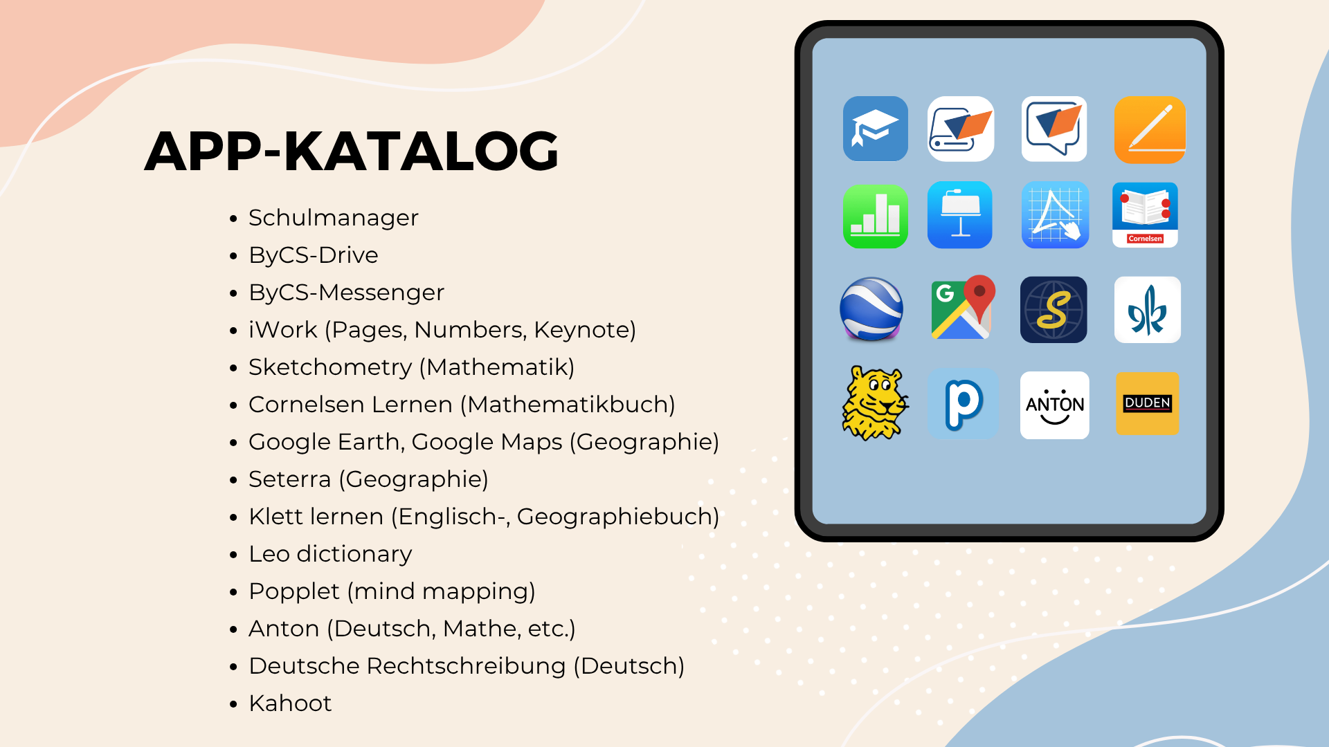 - iPad als Buchersatz in der Schule für die Hauptfächer: Schulbuchapps (Cornelsen, Klett-Verlag)