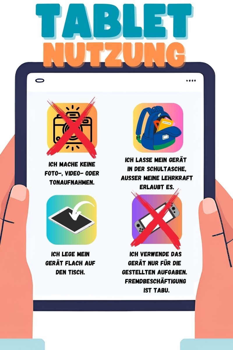 Eine zuverlässige Einhaltung der Tabletregeln gewährleistet ein optimales Arbeiten im Unterricht: