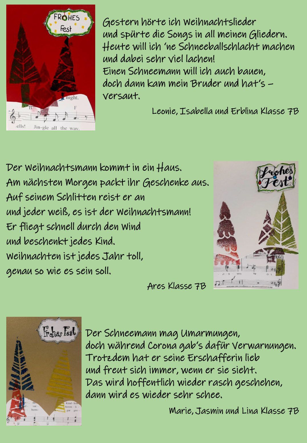 Kurz vor Weihnachten fand noch ein besonders schöner Einfall Umsetzung: Die Bewohner*innen des AWO-Seniorenzentrums in Ismaning sollten Weihnachtspost von der Realschule bekommen. Tagelang wurde gemalt, gebastelt und vor allem geschrieben: So kamen über 100 Briefe zusammen, sodass am Ende sogar für jeden Senior und jede Seniorin ein eigener Brief und obendrein eine kleine Bastelei entstand. Diese freuten sich sehr über die gelungene Überraschung. Der beiderseitige Wunsch ist nun eine langfristige Kooperation der Schule und des Altenheims.