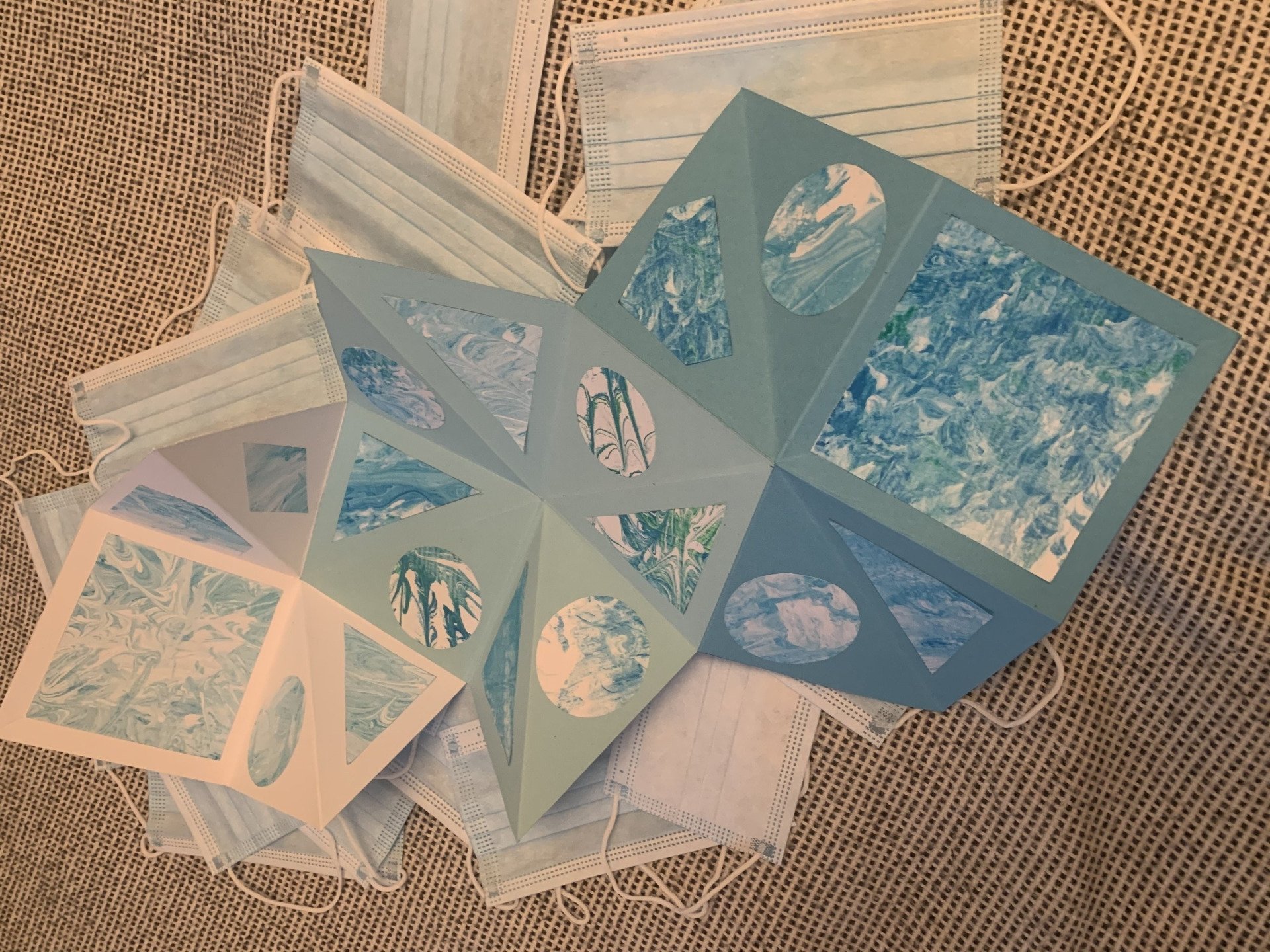 Die Schülerinnen und Schüler der Klassen 8D und 8E machten während des Distanzunterrichts einen Exkurs zum Werkstoff Papier. Dabei erfuhren die Lernenden wie man mit Rasierschaum und Lebensmittelfarbe marmoriert und dies danach kreativ in einem Leporello umsetzt.