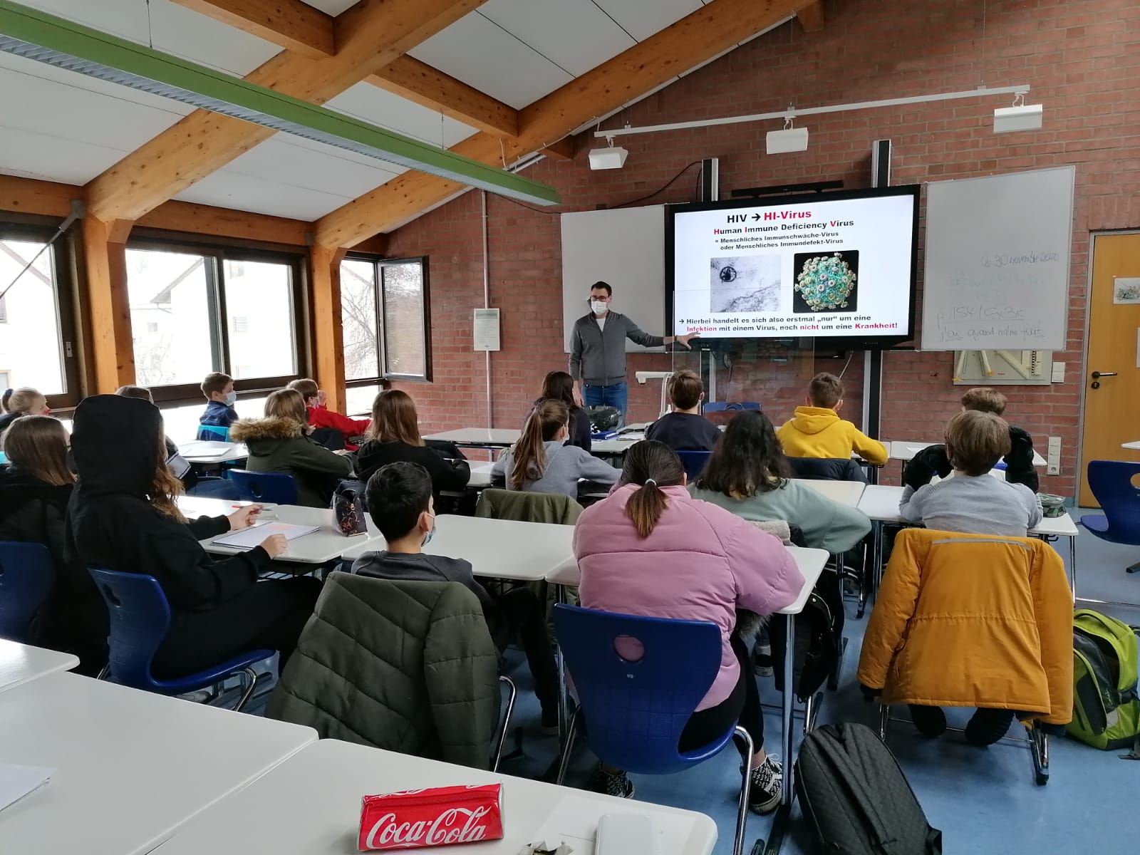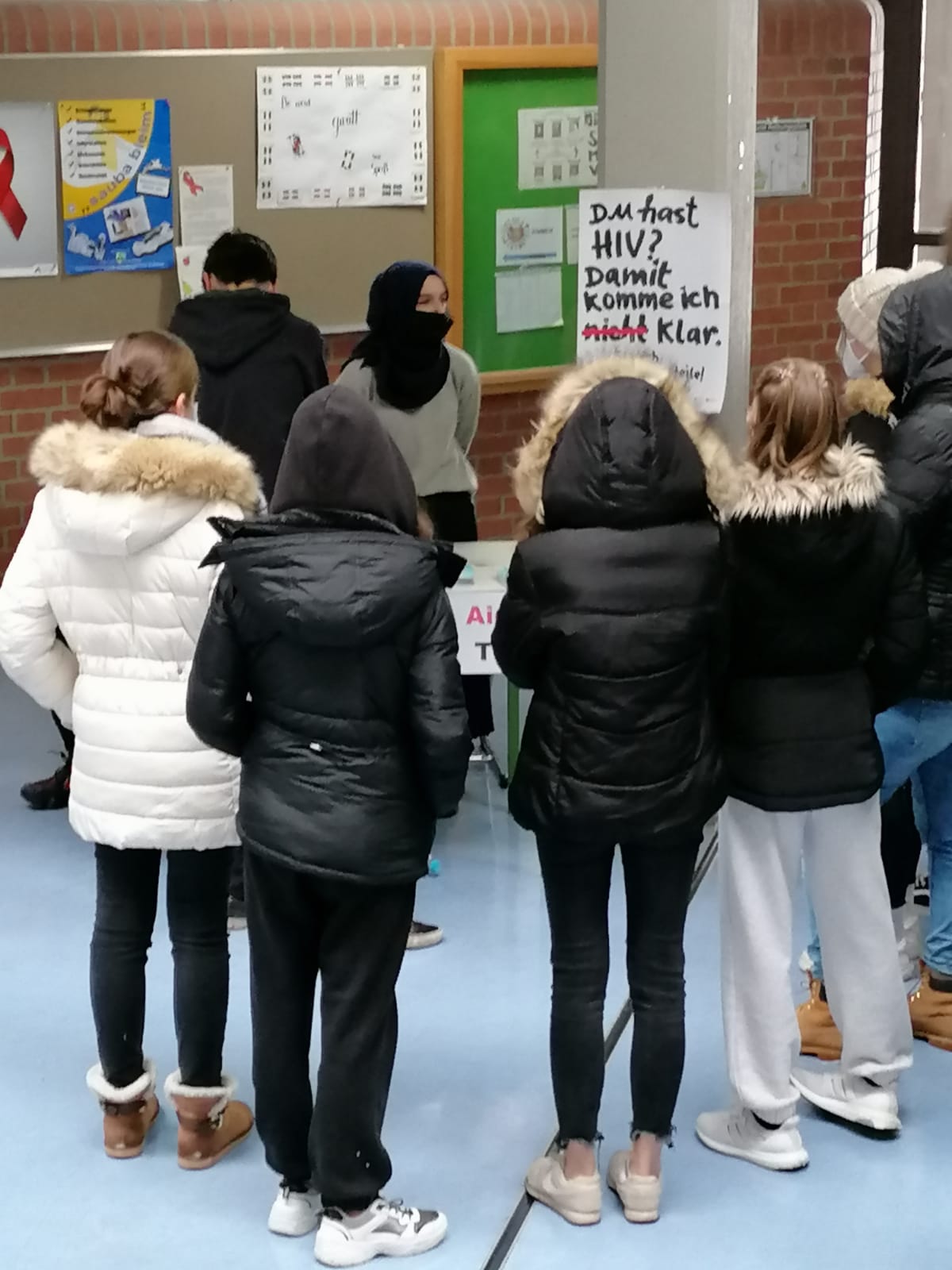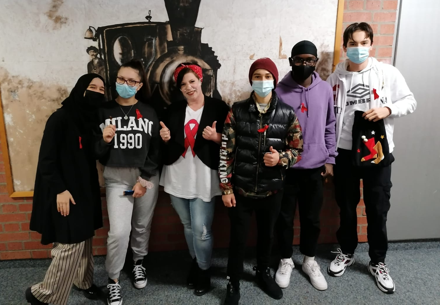 Wie auch letztes Jahr fand Anfang Dezember an unserer Schule der Welt-Aids-Tag statt. Dieses Mal natürlich unter erschwerten Bedingungen, etwas anders und mit einem leicht mulmigen Gefühl… Aber Dank der großartigen Unterstützung der SMV, den Verbindungslehrkräften, den Klassensprechern und Klassensprecherinnen sowie der jeweiligen Klassenleitung kam alles ganz anders: Es wurden beim Schleifchen- und Lolliverkauf phänomenale 628,30 Euro gesammelt, die die Schulfamilie dann an die Augsburger Aids-Hilfe e.V. gespendet hat. Darüber hinaus gab es am 01. und 02.12. für die achten Klassen einen je zweistündigen Vortrag zum Thema „HIV und Aids“.