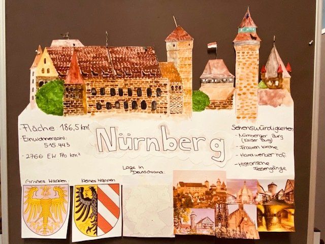 Im Geographieunterricht war die Klasse 9D kreativ gefordert. Ihre Aufgabe bestand darin, eine deutsche Stadt in einem Referat vorzustellen. Mithilfe eines Plakats, das allein schon aufgrund seiner Form einen Rückschluss auf die Stadt zulässt, sollte der Vortrag unterstützt werden. Eine Auswahl an Plakaten lässt nur erahnen, wie hervorragend die Schüler ihre Aufgabe umgesetzt haben.