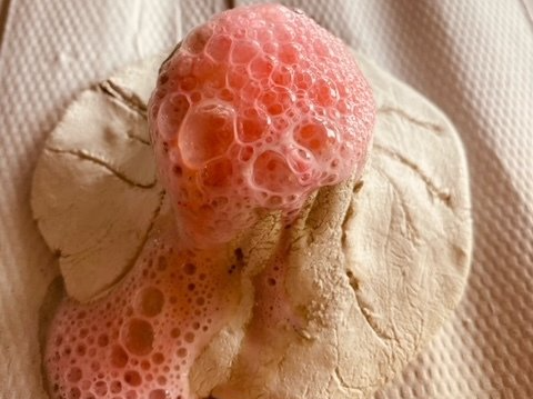 Nachdem die 5. Klässler*innen in diesem Schuljahr bedauerlicherweise auf die Exkursion ins Museum „Mensch und Natur“ im Schloss Nymphenburg verzichten mussten, lag die Idee nahe, die Exkursion einfach in die Schule zu holen. Nach ausführlicher Auseinandersetzung mit der Erdplattenbewegung und dem Vulkanismus, durften die Schüler*innen im Kunstunterricht selbst Vulkane herstellen. Diese ließen wir dann im Geographieunterricht mithilfe roter Tinte, Backpulver und Essigessenz „ausbrechen“.