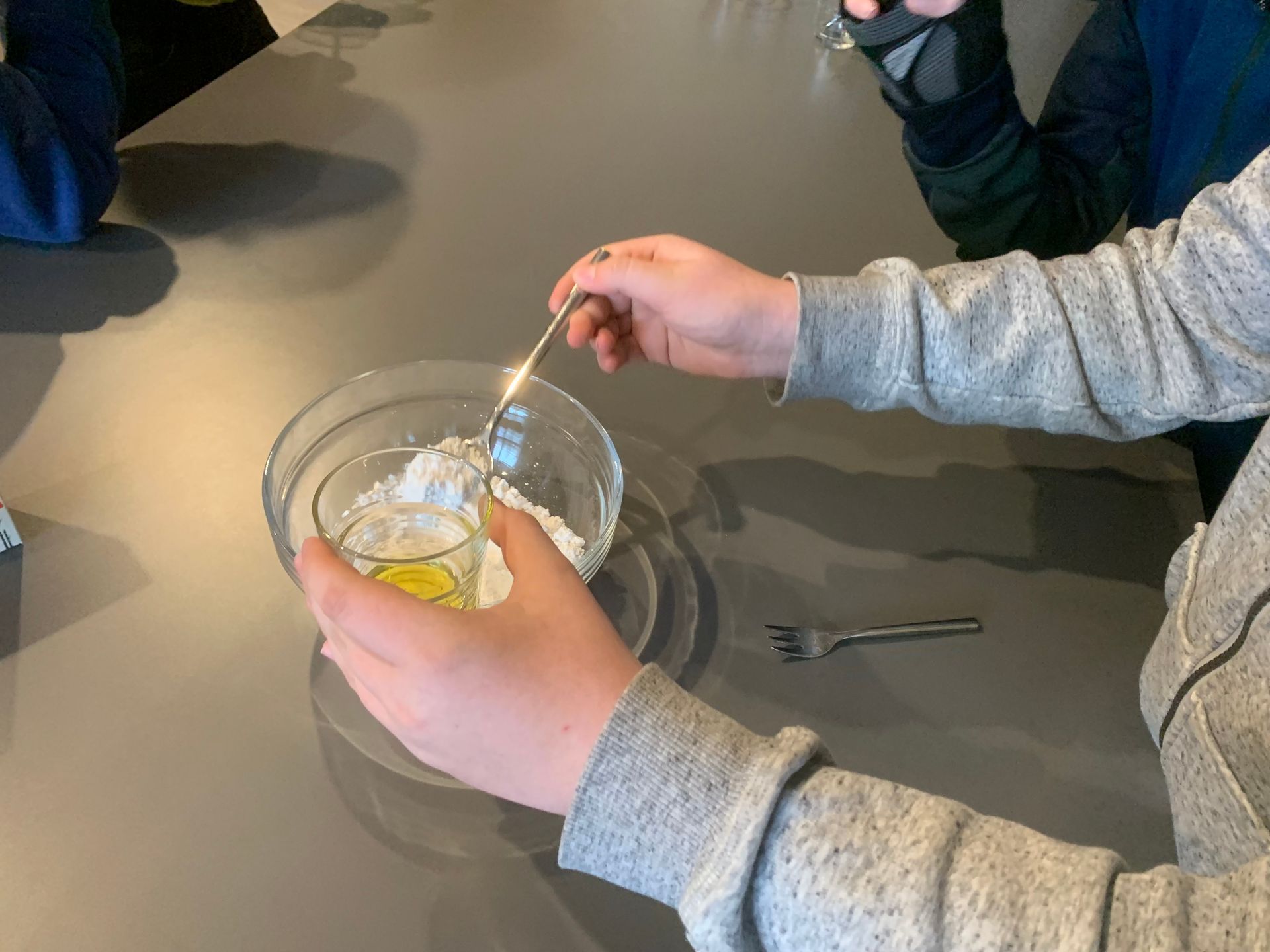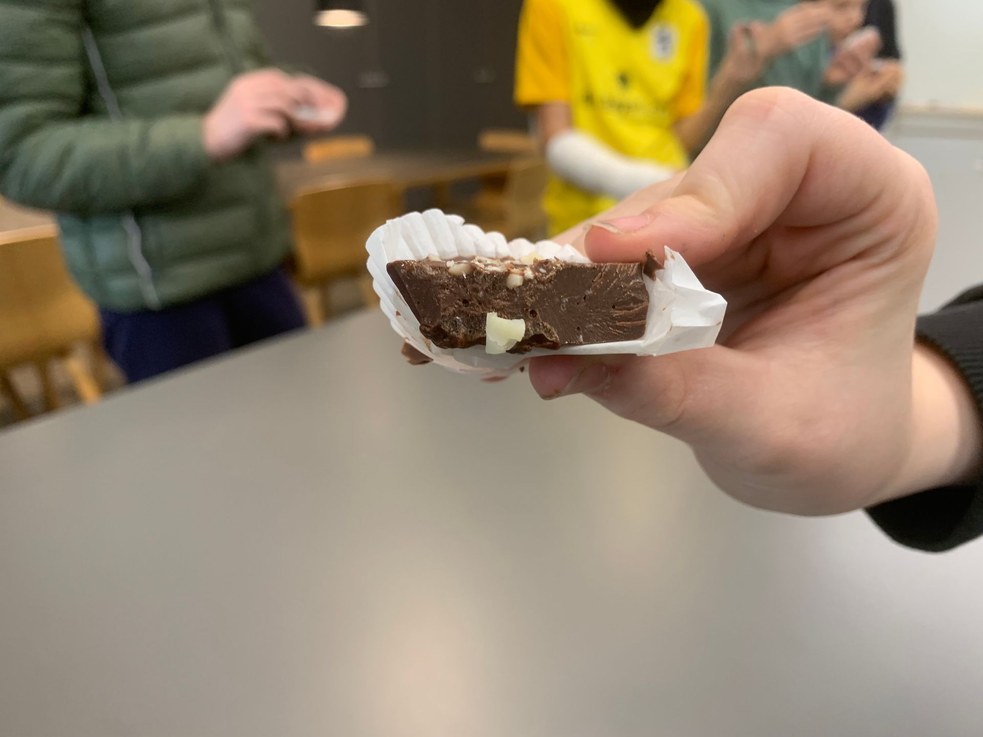 Die Dozentin informierte uns anhand von Schokolade über die Nachhaltigkeit des fairen Handelns und wie wir alle selbst Verantwortung dafür übernehmen können. Daraufhin ging es in die Küche, wo für uns sämtliche Zutaten für die Produktion von selbst gemachter Schokolade aufgebaut waren. Jeder durfte sich aus flüssiger Kakaobutter, Kakaopulver und Puderzucker (alles aus fairem Handel) sein eigenes Stückchen Schokolade herstellen.